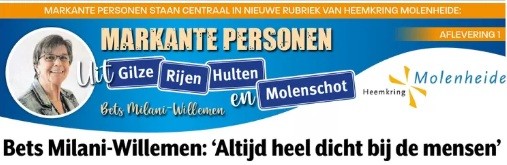 Een Rijense bakkersdochter met een grote maatschappelijke betrokkenheid. Bets Milani-Willemen ging al jong met brood en koekjes ‘op toer’ voor haar ouders. Later deed ze dat voor allerlei andere zaken die haar bezighielden. Van muziek en toneel, tot Jenaplanschool en Rooie Vrouwen, van politiek en gemeenteraad tot Wereldwinkel en Rijen Wereldwijd. Ze deed het allemaal met passie en ‘altijd heel dicht bij de mensen’. Voor het complete verhaal, klik hier.