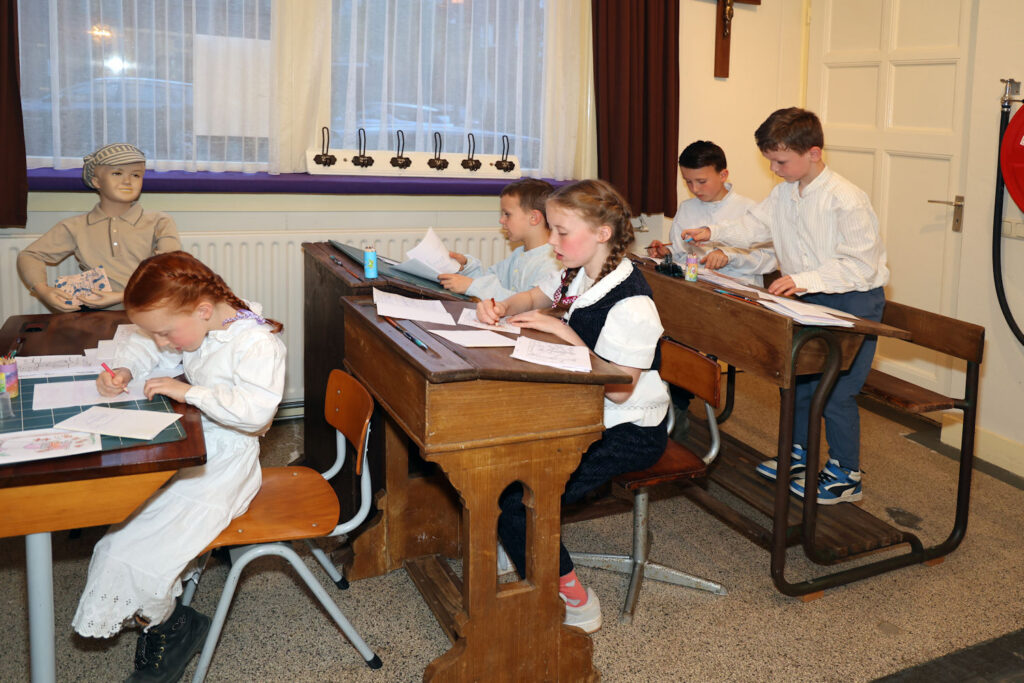 De tentoonstelling bevat ook een historische schoolopstelling: een nagebouwde lokaalinrichting met een non voor de klas. Het geeft een levendig beeld van hoe het er vroeger aan toe ging, van de strenge regels tot de sfeer die velen zich nog levendig kunnen herinneren. Bovendien is er de mogelijkheid om zelf met een kroontjespen en inkt te schrijven. Een bijzondere belevenis voor kinderen.