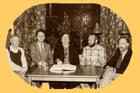 Het eerste bestuur van de heemkring. Van links naar rechts: Gerrit Jacobs, Jan Simons, Hugo Roos, Jan Theunissen en Vic Haagh. De foto is gemaakt in 1978 |